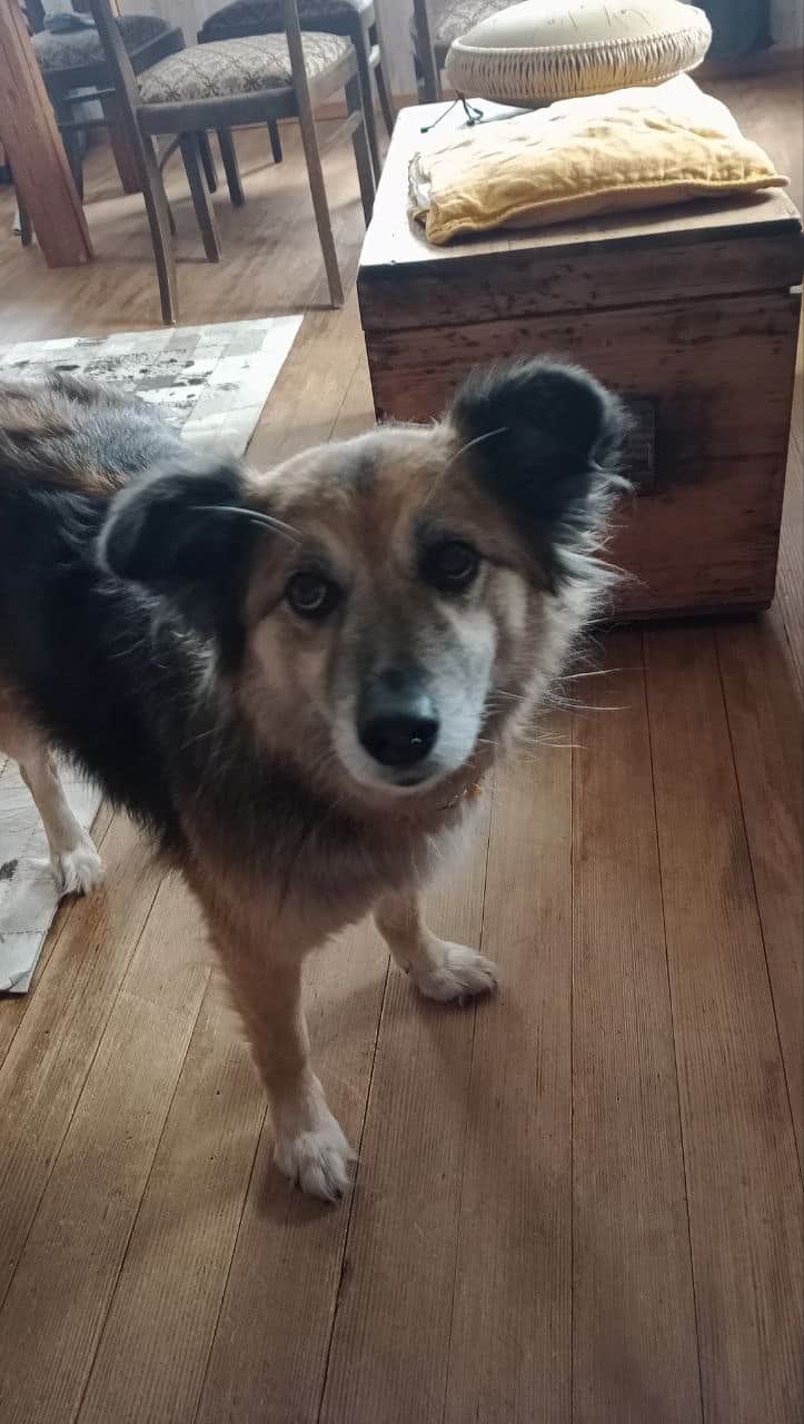 Tedi sorgt dafür, dass am Hof alles seine Ordnung hat. Sie begrüßt jeden Gast zuverlässig und meldet auch ganz gewissenhaft, wenn sich etwas bewegt – ein echter Wachhund eben.